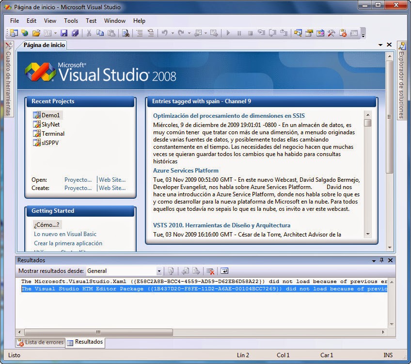 En esta oportunidad, les quiero comentar como resolver un problema, que me ocurrió hace unos días con Microsoft Visual Studio 2008 Profesional.